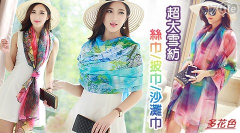 平均最低只要158元起(含運)即可享有超大雪紡絲巾披巾沙灘巾:1入/2入/4入/8入/12入,多色選擇?